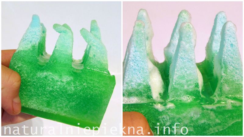 Śmiesznie wygląda, jak grzebień 😀 Ale myk z zatopioną w środku gąbką dużo bardziej podoba mi się niż opcja z drobinkami czy pestkami peelingującymi.