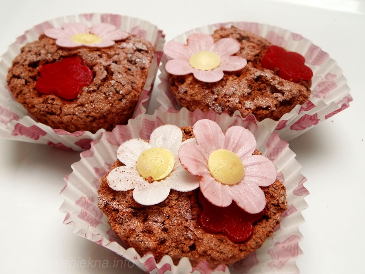 wysokości. - Możemy udekorować nasze babeczki, ja użyłam kwiatków wykonanych z glicerynowego mydła oraz spożywczych kwiatków z opłatków. Całość jeszcze przypudrowałam nieco błyszczącą miką. Elementy do dekoracji należy mocno docisnąć, a opłatkowe kwiatki nieco zmoczyć by trzymały się całości