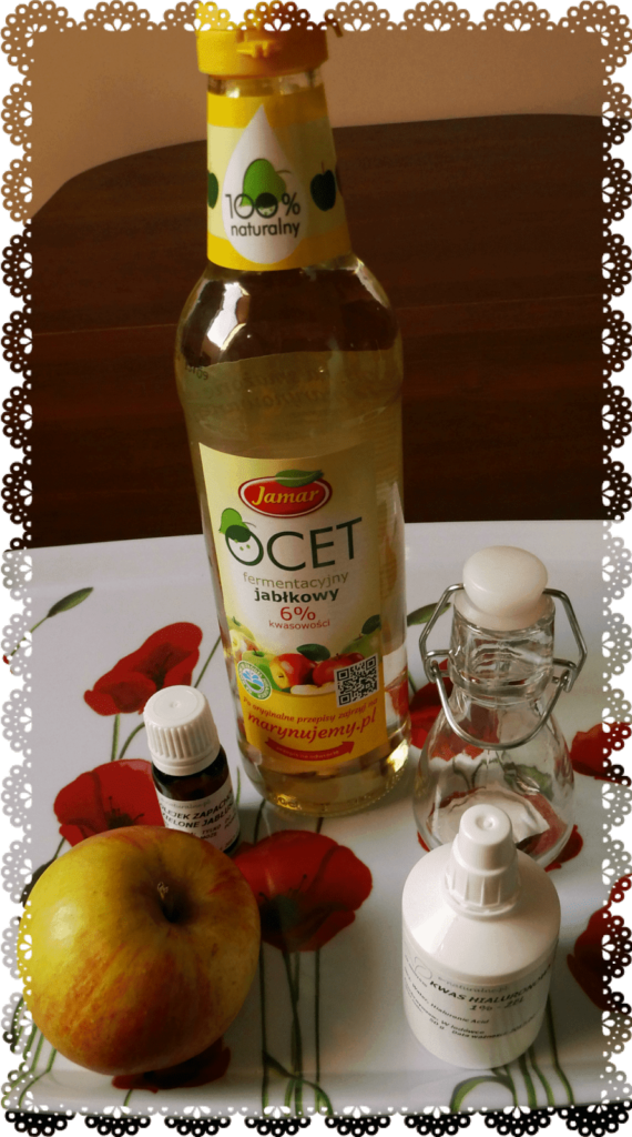 Ocet jabłkowy stosowałam głównie jako płukankę do włosów wymieszany z wodą. Lubię ocet bo pięknie nabłyszcza włosy i ogranicza i ch przetłuszczanie. Twój przepis jest innowacyjny, z chęcią go wypróbuję:)