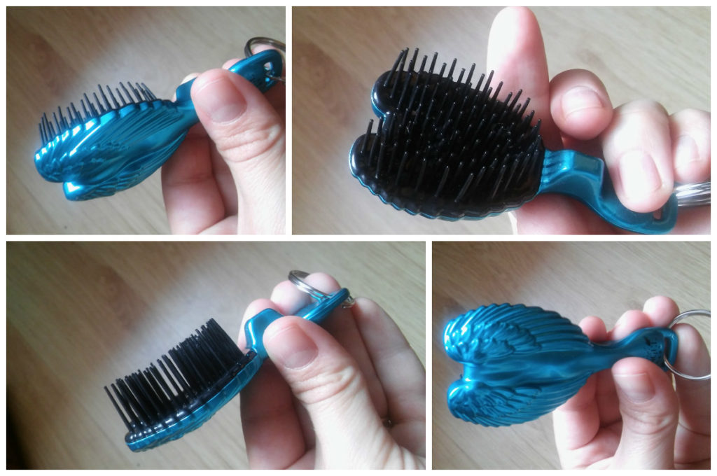 P.s do moich zbiorów dołączył również świetny gadżet dla każdej włosomaniaczki. Szczotka Tangle Angel Baby. Nie dość że wygląda uroczo, to spełnia swoje zadanie. W awaryjnych sytuacjach z powodzeniem zastąpi zwykłą szczotkę do włosów. Można przypiąć ją do kluczy, przez co zawsze mamy coś do rozczesania włosów pod ręką.