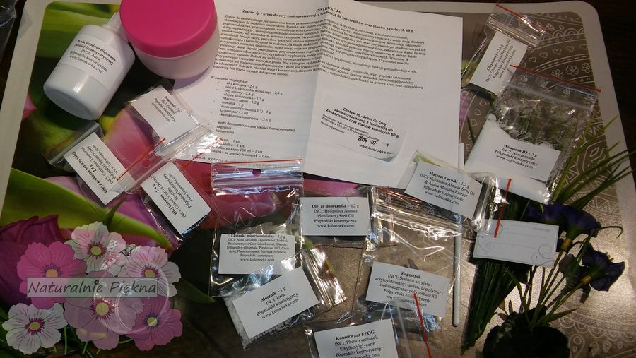 Proces przygotowania kremu jest bardzo łatwy i nie wymaga większej wiedzy ani umiejętności z dziedziny kosmetyki. Zestaw zawiera czytelną i łatwą do zrozumienia instrukcję przygotowania. Zawarte są w niej szczegółowe informacje, jak krem zachowuje się na poszczególnych etapach przygotowania. W zestawie jest zawarte mieszadełko do przygotowanie kremu, osobiście wolałam zastąpić je małym mikserem do ubijania piany ( została tylko zdjęta mała sprężynka, by krem się nie ubił a wymieszał). Myślę, że ułatwił on nieco zadanie wymieszania kremu. Oczywiście, mieszadełko również daje radę. Po szczegółowe informacje przygotowania, zapraszam tutaj