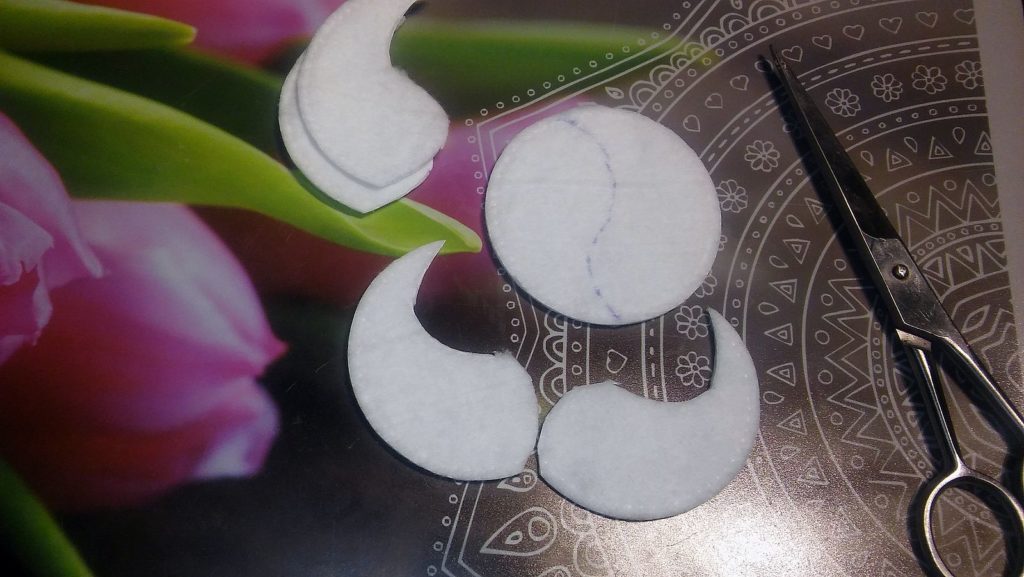 Bazą każdej maseczki są płatki kosmetyczne. Wycinamy z nich ergonomiczny kształt, który będzie jak najlepiej przylegał pod skórę oczu. W ramach oszczędności, z jednego wacika wycinam od razu płatki pod oboje oczu. Zawsze wcześniej mam przygotowane waciki, by po chwili przygotować szybką maseczkę do zadań specjalnych. W zależności od potrzeb, maczam waciki w odpowiednim płynie i na co najmniej 10 minut chowie do lodówki. Dodatkowo schłodzone maseczki, działają znacznie lepiej ! Trzymam je pod oczami w zależności od możliwości od 5 do 20 minut