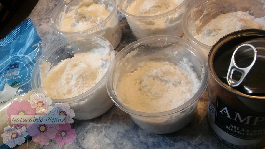 Mydło topimy w kąpieli wodnej lub w mikrofali.(Najlepiej użyć glicerynowego, te szybciej się topi) Gdy mydło będzie rozpuszczone, dodajemy do niego mleczko, olej i zapach. Wszystko ubijamy mikserem na sztywną mydlaną piankę. Przekładamy do pojemników. Ze względu na zawartość mleka kokosowego, najlepiej przechowywać kosmetyk w lodówce i zużyć do dwóch tygodni czasu od przygotowania.