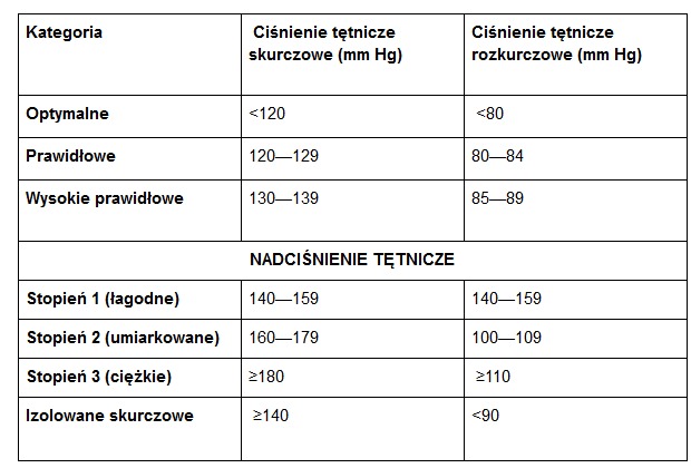 Kategoria Ciśnienie tętnicze skurczowe (mm Hg) Ciśnienie tętnicze rozkurczowe (mm Hg)