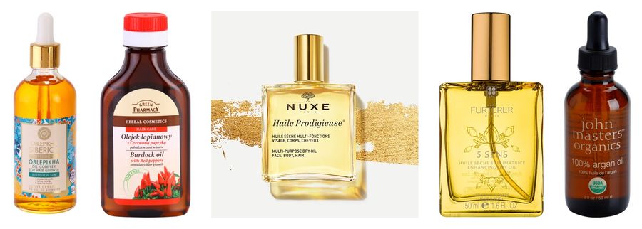 Natura Siberica Sea-Bucktorn / Green Pharmacy Hair Care Red Peppers / Nuxe Huile Prodigieuse / Rene Furterer 5 Sens / John Masters Organics 100% Argan Oil |