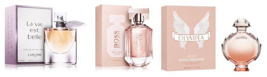 Lancôme La Vie Est Belle / Hugo Boss Boss The Scent / Paco Rabanne Olympéa Aqua Légère |