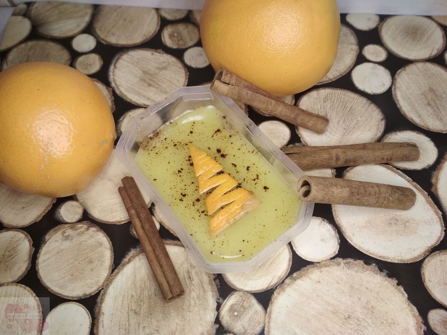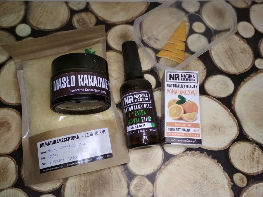 Nic prostszego. Topimy w kąpieli wodnej lub w mikrofali wosk pszczeli oraz masło kakaowe, pamiętając przy tym by nie przegrać produktów. Później gdy masło nieco ostygnie, dodajemy olej oraz olejek eteryczny. Przelewamy całość do foremki. Gdy masełko zastygnie, dekorujemy górę skórką z pomarańczy. ( By zrobić choinkę należy wyciąć trójkąt i naprzemiennie naciąć brzegi) i gotowe ! Proste a efektowne masełko do ciała, najlepiej przechowywać w lodówce i zużyć do dwóch miesięcy po przygotowaniu.
