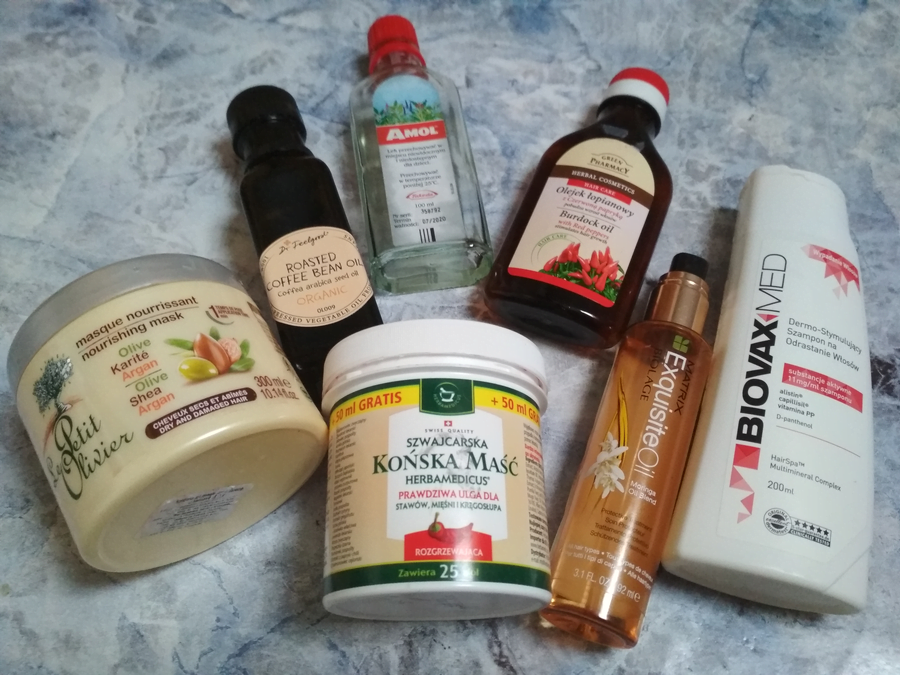 - Co wieczór olejowałam włosy (zamiennie olejem z ziaren kawy i olejem łopianowym)